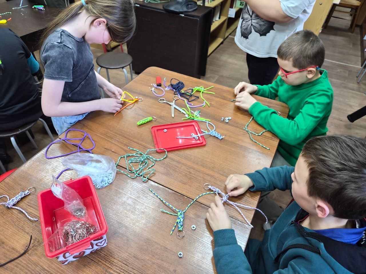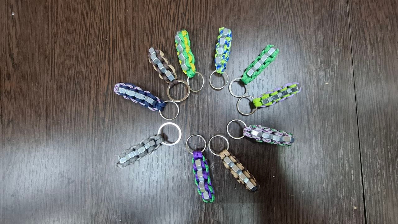 21 февраля в Дороховской сельской библиотеке в рамках проекта «Поделись умением своим» прошел крутой мастер-класс «Подарок защитникам Отечества» по плетению брелков из паракорда с гайками.