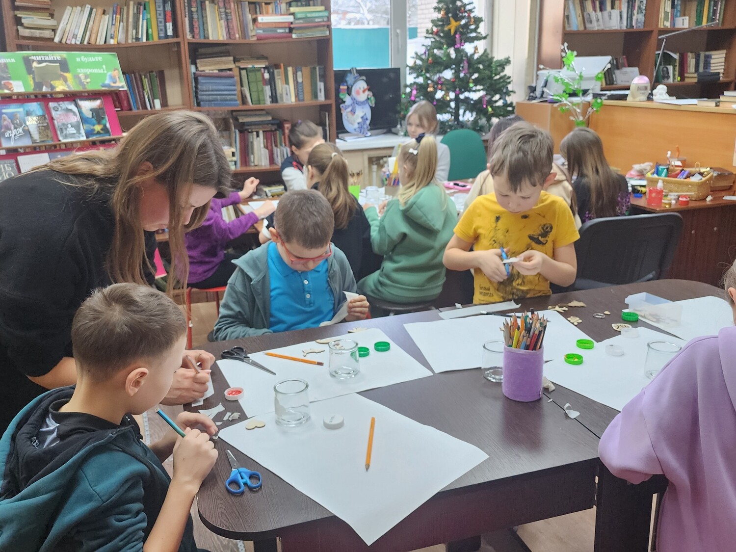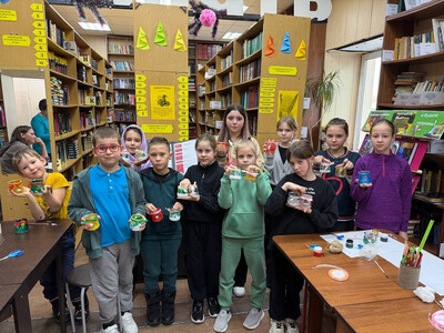 Под руководством Алины Кулешовой участники превращали обычные стеклянные баночки в сказочные зимние домики. В библиотеке царила атмосфера уюта, творчества и радостного общения.